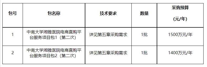 中南大学湘雅医院电商直购平台服务项目(第二次)公开招标公告