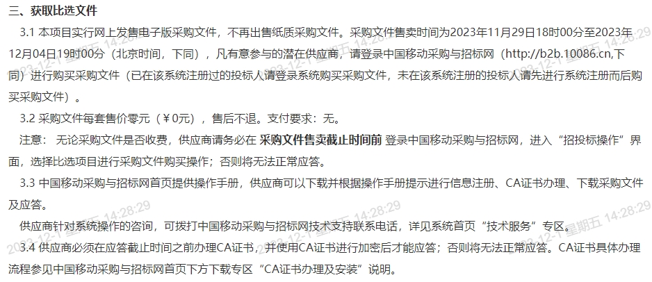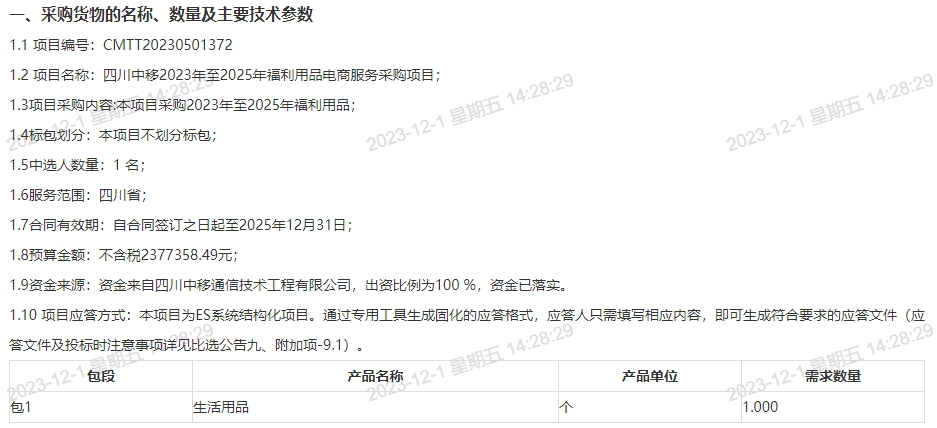 四川中移2023年至2025年福利用品电商服务采购项目 比选公告